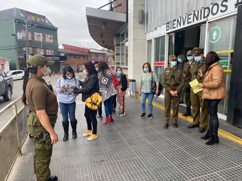 Funcionarios de la Dirección de Seguridad Pública de Castro Municipio junto a personal de la Segunda Comisaría de Carabineros de la ciudad, efectuaron recientemente la entrega de material informativo en las afueras del Mall Paseo Chiloé a los transeúntes. La actividad se enmarca en la campaña “No regales tus pertenencias” con la finalidad de llamar al autocuidado y así evitar ser víctima de posibles delitos.