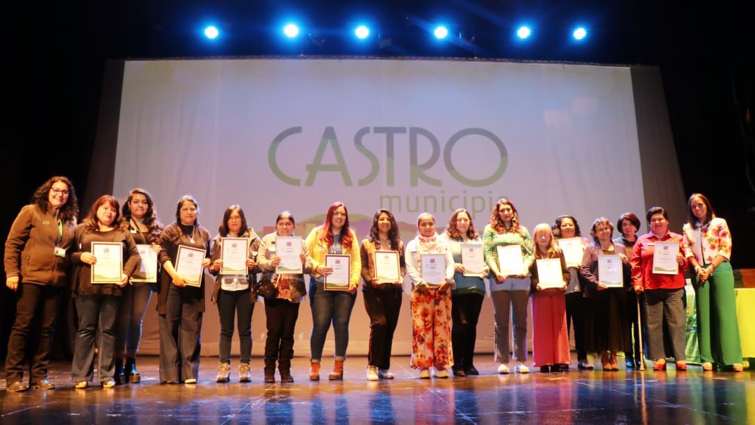 En el centro Cultural de Castro se llevó a cabo la ceremonia denominada “Celebrando tus logros”, en donde se certificó a 120 vecinos y vecinas de la comuna que se especializaron en diferentes oficios como cestería, fotografía, administración contable, pintura en vellón, tallado en madera, repostería y grúa horquilla.