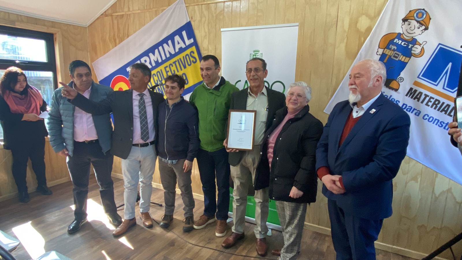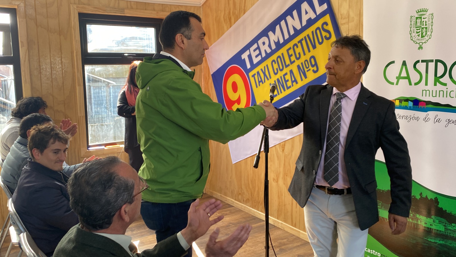 El alcalde de Castro Municipio, Juan Eduardo Vera, junto a concejales y autoridades comunales entregaron hoy las llaves del nuevo centro comunitario al sindicato de trabajadores independientes dueños y choferes de taxis colectivos Línea 9 “Lagos de Chiloé”, representados por su presidente Clemente Cavieres.