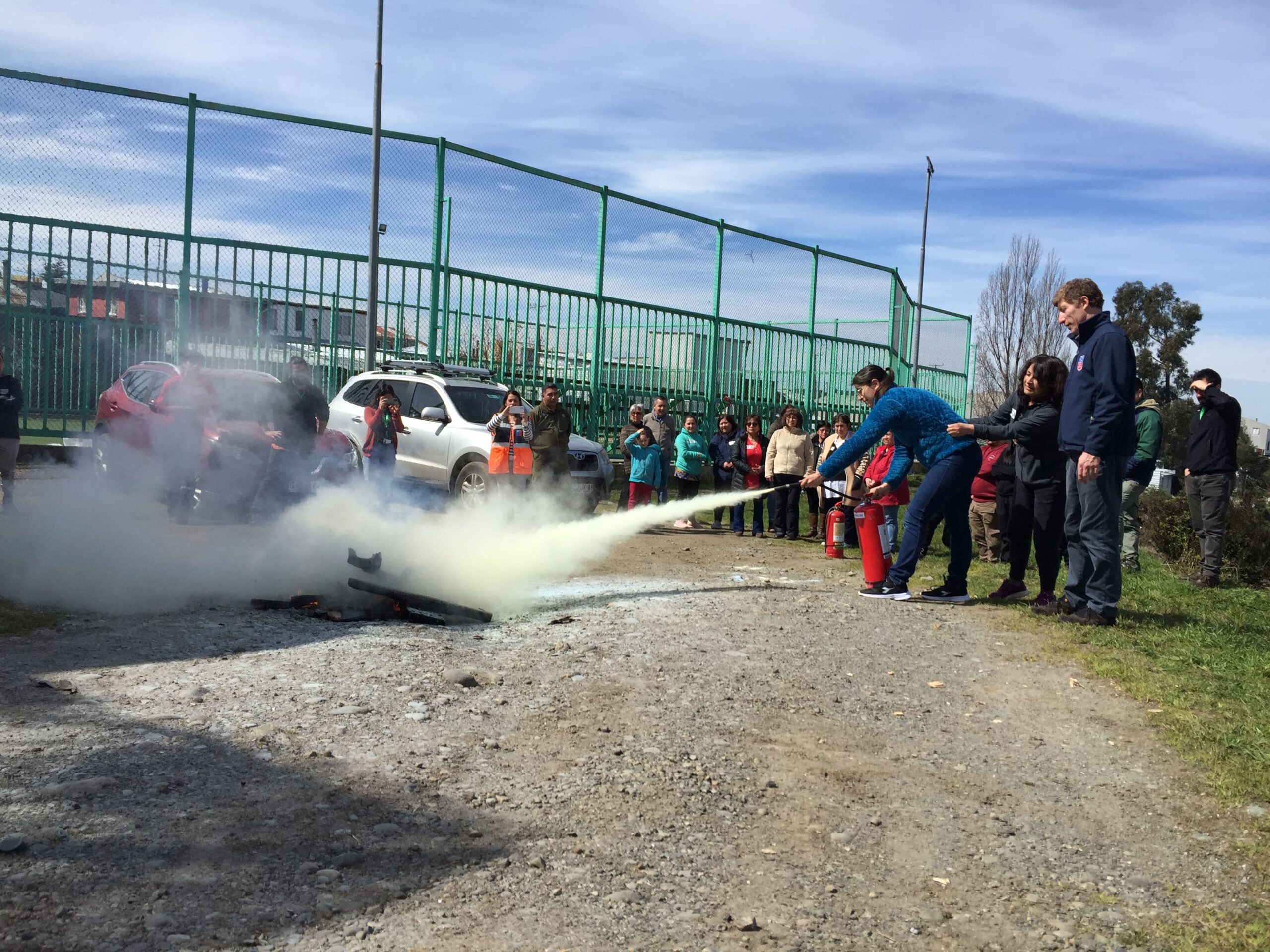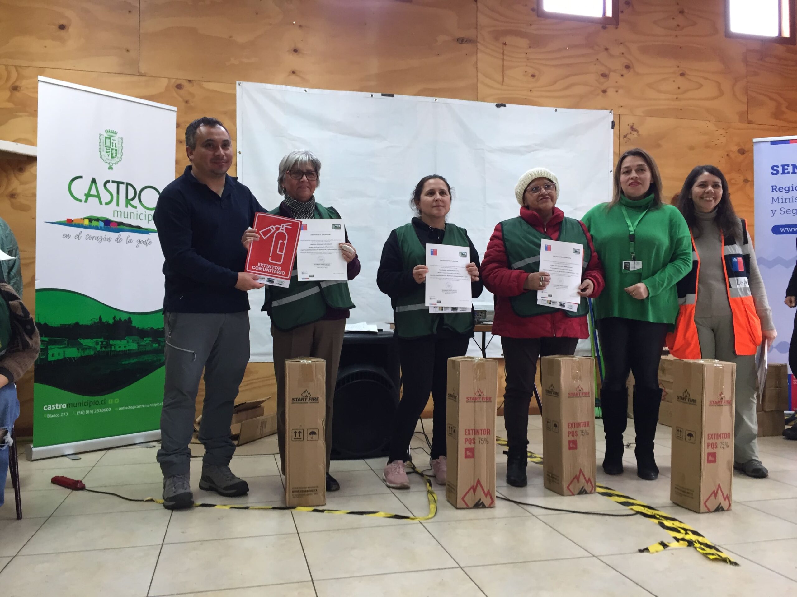 La capacitación culminó con un ejercicio práctico de supuesta emergencia, con la colaboración de voluntarios y la Sexta Compañía de Bomberos de Castro. Al finalizar se entregaron kits de emergencias y extintores de uso comunitario para la comunidad.