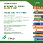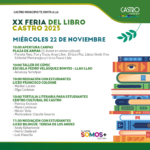 La XX Feria del Libro Castro 2023, contará con editoriales y librerías como Planeta Toys, Flor y Truco, Anay Libros, El Gran Pez, Libros Verde Vivo, Editorial Mentanegra, Libros Pascal Ltda, entre otros, además de talleres con inscripción previa al correo cultural@castromunicipio.cl junto a mediaciones en establecimientos educacionales de Castro, y tertulias literarias, donde destaca la presencia del gran pensador y escritor chileno Gabriel Salazar.