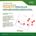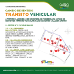 La Dirección de Tránsito y Transporte Público de Castro Municipio informó que se procederá a realizar el cambio de sentido de tránsito en seis calles de la capital provincial de Chiloé. Estas variaciones comenzarán a regir desde el próximo 24 de noviembre de 2023 con el objetivo de entregar mayor seguridad vial en zonas donde hay establecimientos educacionales.