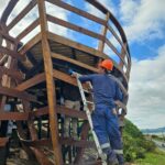 Es así como el proyecto “Mirador astillero sur” ya está en el último periodo de construcción, al finalizar la etapa de obra gruesa que componen las fundaciones de hormigón y estructura de acero. Actualmente la obra está en el detalle y terminaciones de madera de los más de 60 metros cuadrados del diseño inspirado en las históricas navegaciones chilotas.