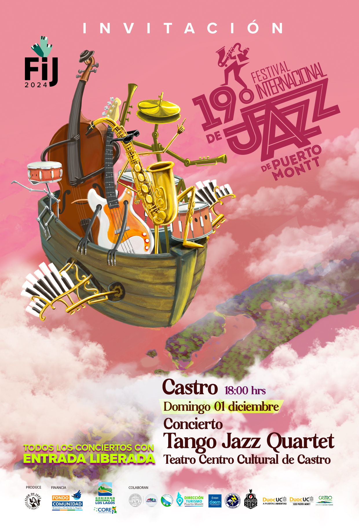 En la capital chilota y en el marco del cierre de este certamen que se realizará en colaboración con el V Festival de Jazz de Castro, la cita es para el domingo 1 de diciembre a las 18 horas en el Centro Cultural, para disfrutar del concierto del destacado grupo argentino Tango Jazz Quartet. Las invitaciones se encuentran disponibles en este mismo recinto de calle Serrano.
