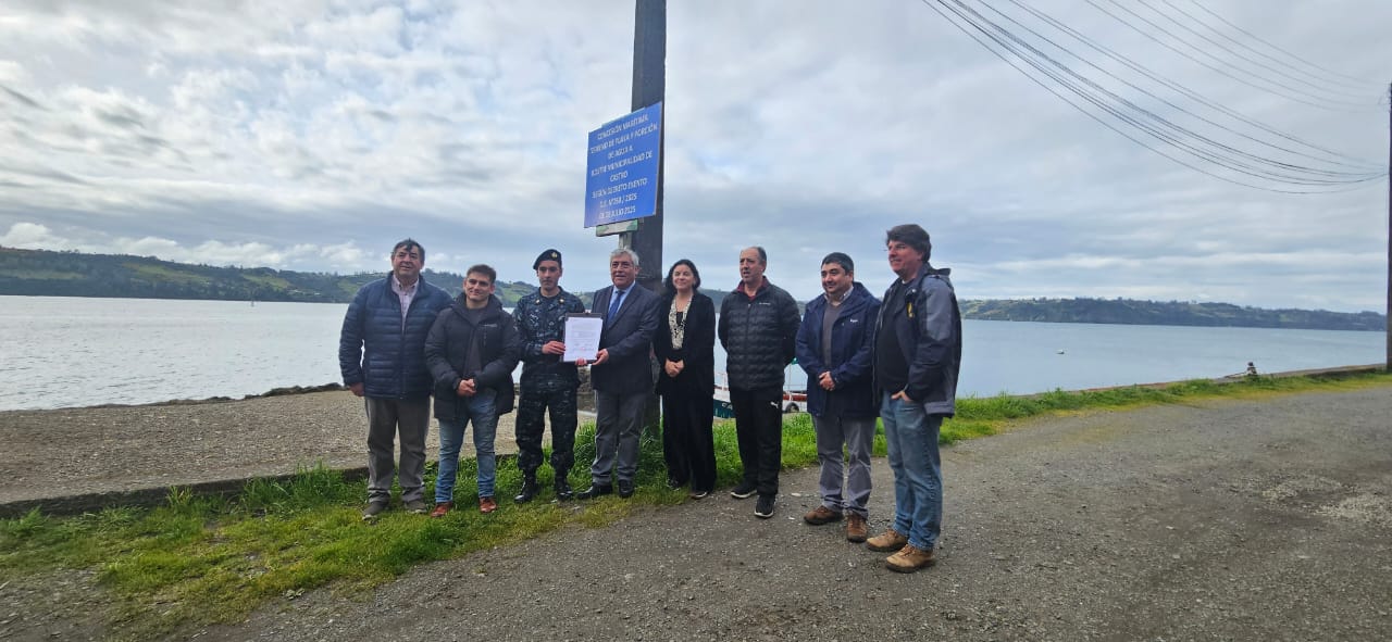 Cabe señalar que, durante la firma de la concesión, estuvieron presentes también el concejal Enrique Soto, representantes de la Hermandad de Costa y el Secretario General de la Corporación Municipal de Castro, Daniel Navarro.