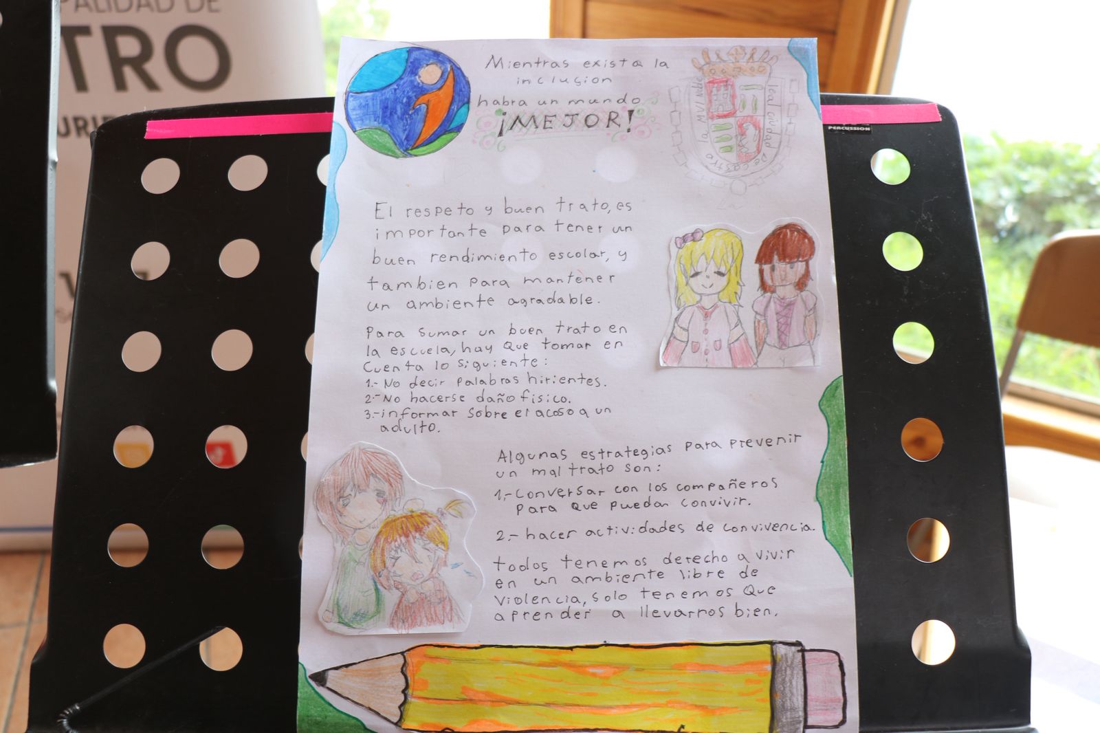 Con el objetivo de promover el respeto, la empatía y la buena convivencia escolar, se invitó a estudiantes de distintos establecimientos de la comuna a expresar, a través del arte, sus reflexiones sobre el tema.