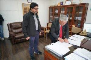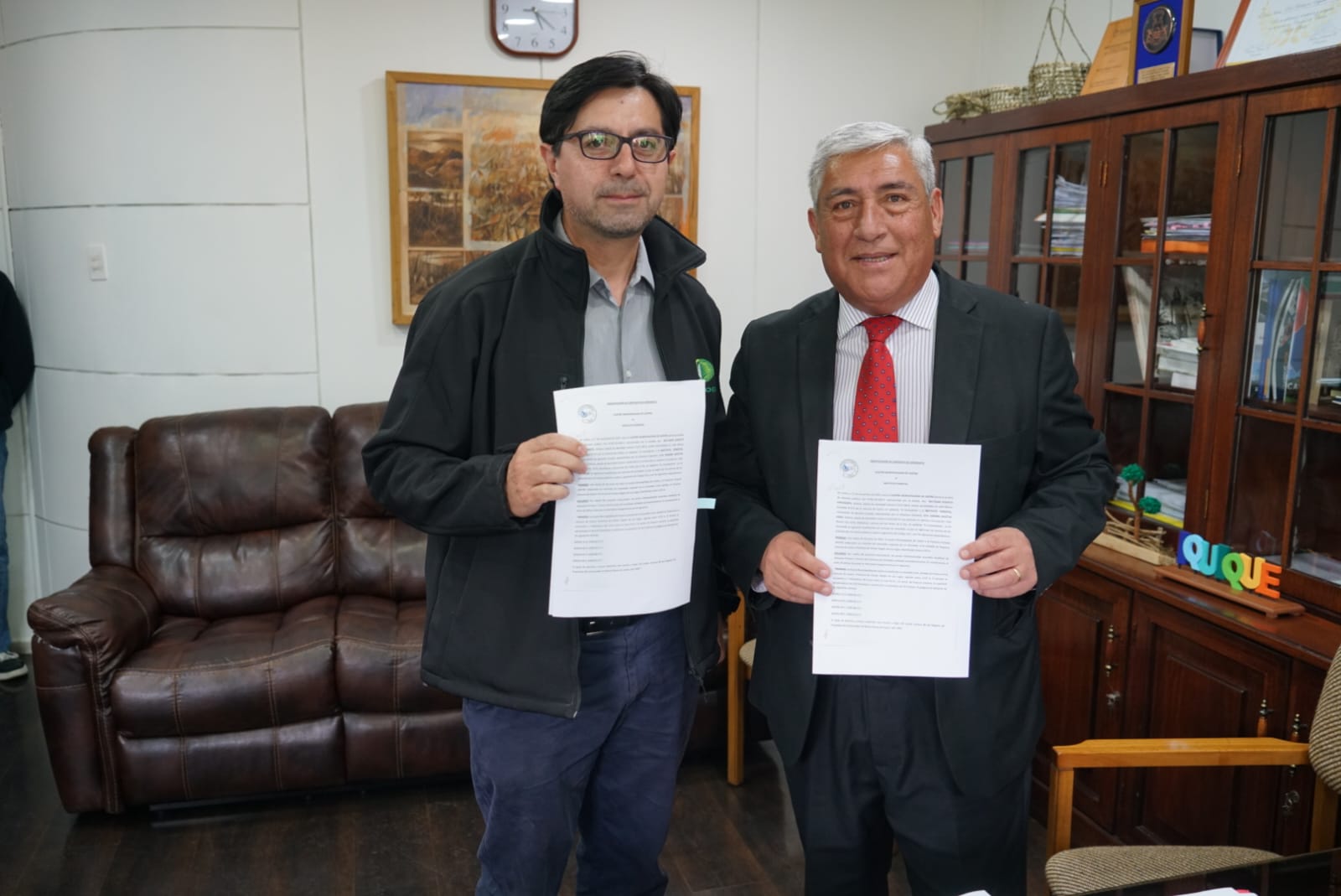 El alcalde de Castro, Baltazar Elgueta Cheuquepil, y el gerente regional de INFOR, Gerardo Vergara, firmaron un acuerdo que asegura la continuidad de las importantes labores de esta institución en el Parque Puacura, propiedad del municipio.