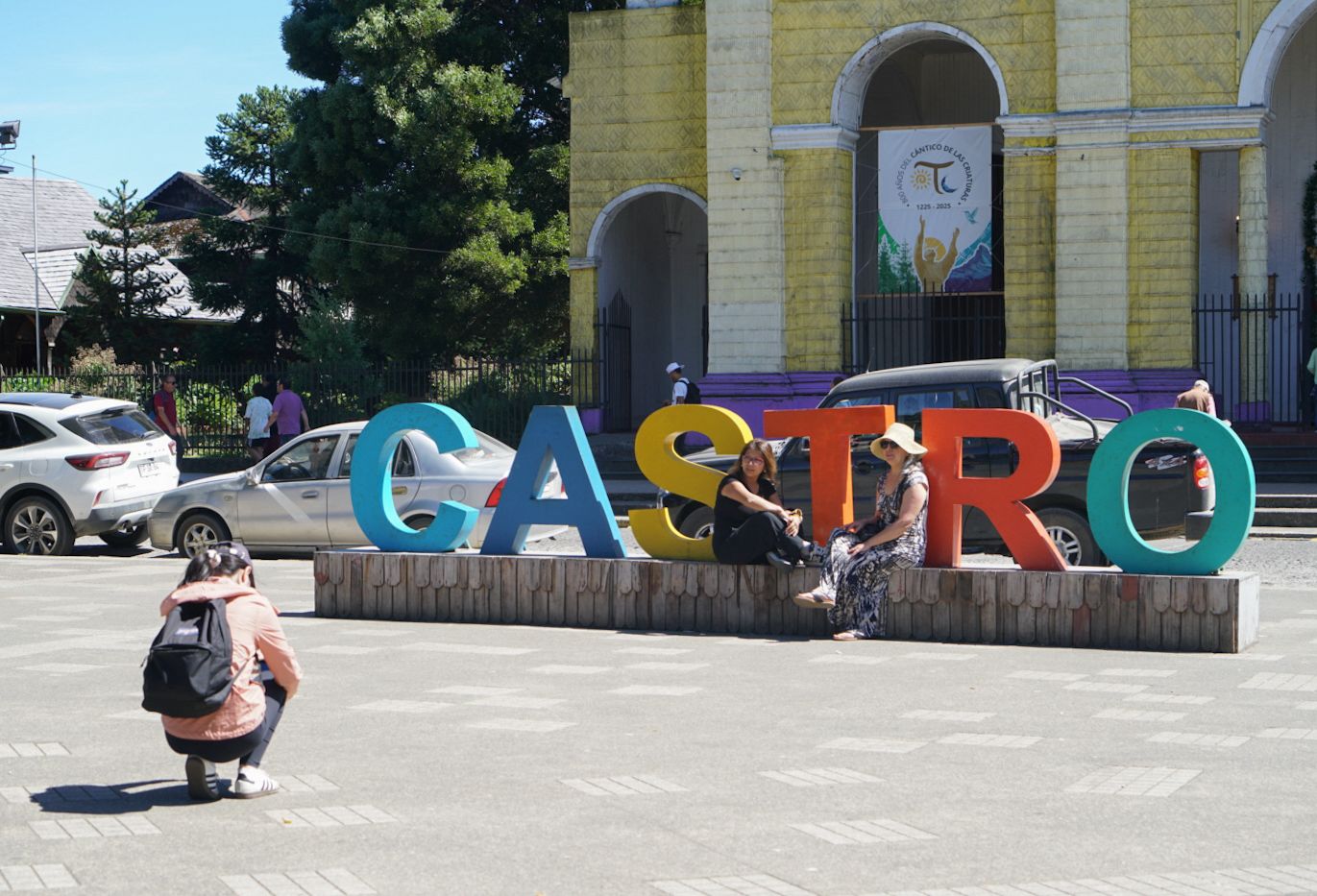 “Castro es una ciudad muy acogedora y bonita. Nos gusta mucho su cultura y la cercanía de su gente, que nos ha recibido muy bien. Además, sus paisajes, la feria, la iglesia y esta plaza tan verde y hermosa hacen que la visita sea muy especial”, señaló Guillermo Wachtendoff, turista de Vallenar.