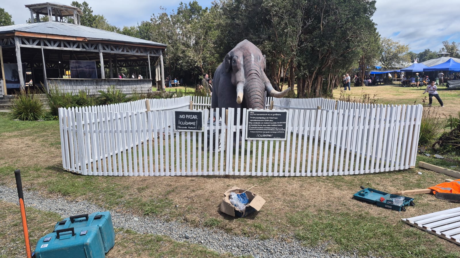 “No está diseñado para que le tiren piedras, no está diseñado para que se cuelguen de los colmillos, no está diseñado para que lo hagan caballo. Está diseñado para observarlo y saber más de su historia. Se trata del único animal chilote prehistórico que tenemos hasta el momento”, advirtió el escultor.