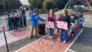 “Decidimos traer nuestro circuito de seguridad vial para que los niños ya vayan aprendiendo desde pequeños, desde los primeros días, cómo es que deben comportarse tanto en la calle como también en los furgones”, dijo Ruiz.
