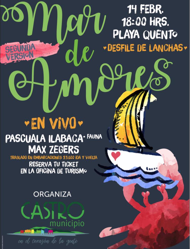 Como una forma de celebrar el día de San Valentín y potenciar las actividades en el Mar, y un reconocimiento a las tradiciones de navegación, es que la oficina de turismo con la colaboración de deporte y juventud de Castro Municipio y la comunidad de Quento han organizado la segunda versión de Mar de Amores.