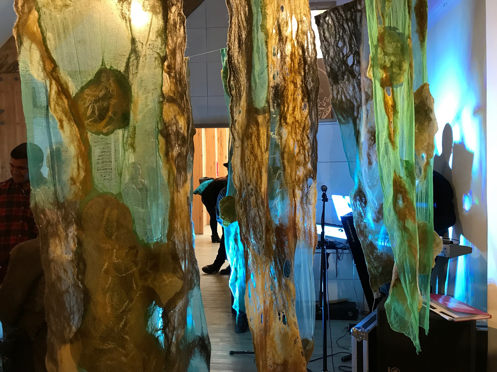 La inauguración contó con una novedosa propuesta que combinó el arte textil, la aromaterapia y la música en vivo de los destacados artistas chilotes, Horacio Rebolledo y Daniel Alvarado.